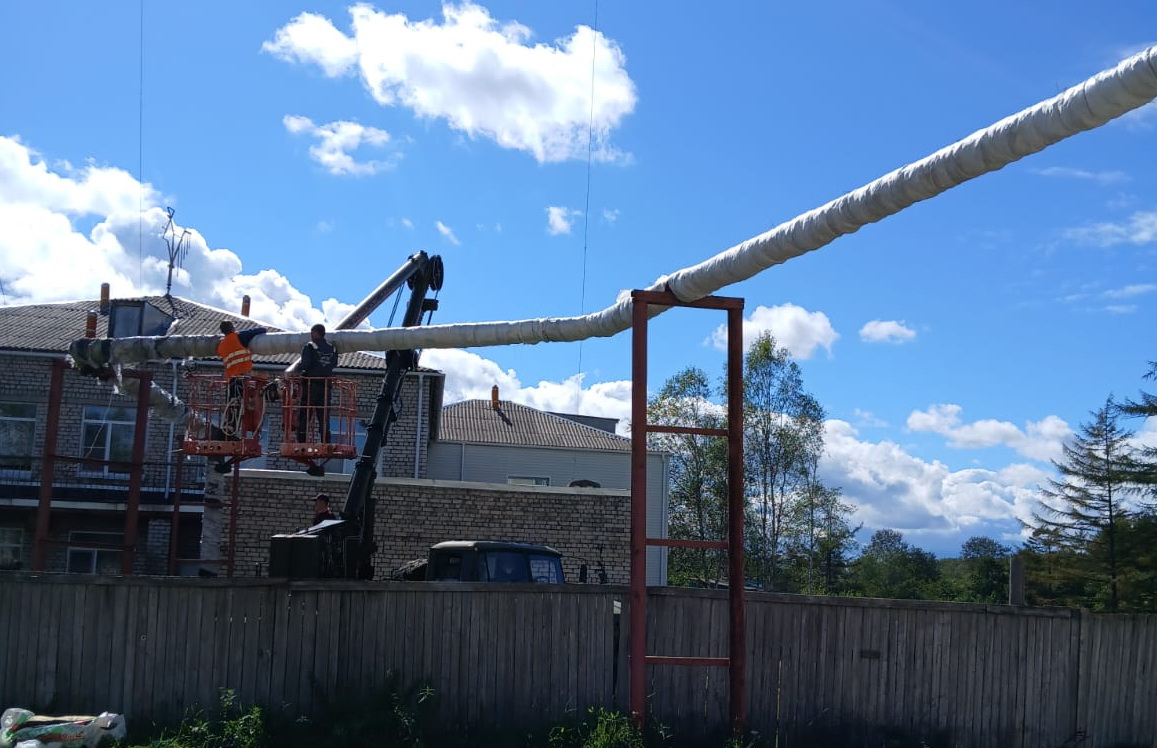 Специалисты МУП «Янтарь ДВ» в рамках подготовки к отопительному сезону 2025–2026 годов продолжают работы по ремонту теплоизоляции теплотрассы в п. Монгохто.